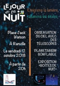 Le Jour de la Nuit est une opération de sensibilisation à la pollution lumineuse, à la protection de la biodiversité nocturne et du ciel étoilé. À cette occasion, nous serons présents :